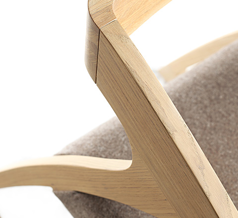 Frame: solid wood (beech, oak or walnut) Seating: webbing straps, polyurethane HR foam Cover: fabric, leather or eco leather Finish: stained or waxed