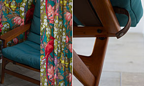 Frame: solid wood (beech, oak or walnut) Back:eco leather straps Pillow:polyurethane HR foam with feather padding Cover: fabric, leather or eco leather Finish: stained or waxed